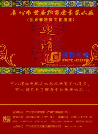 佛教在线广州讯 2010年9月14日至17日,洛桑龙达(金刚上师)——首届唐卡艺术展将在广州市艺术博物馆举行。