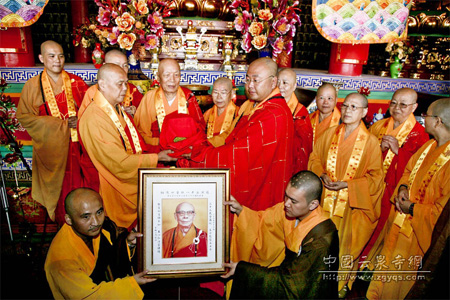 值张家口台湾两岸道源长老佛学思想论坛举办之际,台湾中道学苑住持真华长老和基隆海会寺率同法裔护送道源长老灵骨回张家口云泉禅寺安奉.护送团一行于2010年9月9日下午抵京,云泉禅寺方丈果岚法师,以及来自张家口、北京等地法师信众组成的迎接团在北京国际机场恭迎台湾护送团队和前来参加云泉寺扩建殿堂开光暨张台两岸道源长老佛学思想论坛的众法师。