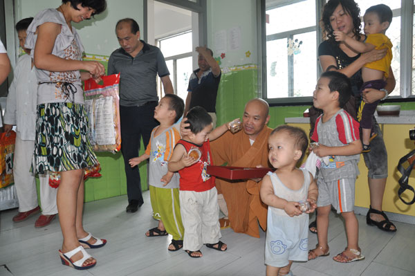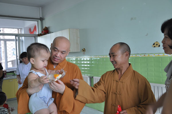 徐州社会福利院副院长陈莉热情接待了果光大和尚一行,并带领看望福利院的儿童。据陈莉副院长介绍,徐州社会福利院共收留300多名弃婴,大多是残疾儿童。徐州兴化寺方丈果光大和尚心系这里的儿童,每年年、节都要看望他们。 ( 江苏徐州佛协 霍钦瑞 供稿)