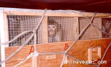 数万只猴子被关进小笼子,它们的命运甚至比毛里求斯的猴子更为悲惨。很多饲养的猴子用爪子扒住笼子的栏杆,茫然地看着前方。虽然很多猴子将被运到亚洲一些国家的实验室供研究使用,但还是有大量猴子被出口到西方,其中就包括英国在内。