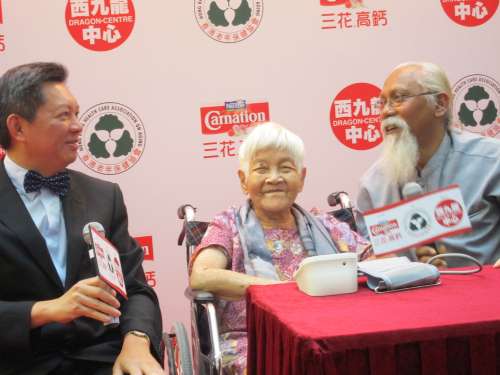 许哲昨日专程由新加坡来港出席保健活动,同场大会为长者提供免费血压检查及派发长者奶粉。