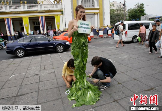 泰国美女穿着“青菜长裙”呼吁素食
