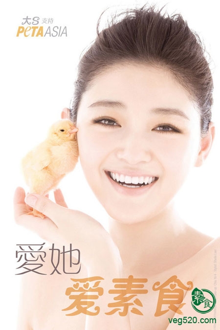曾荣获善待动物组织09年度亚洲最性感素食艺人的大S表示:“动物就像我们的家人、兄弟姐妹和朋友;我们是同类而且我们都是平等的,我爱所有动物,所以我不会吃它们。”