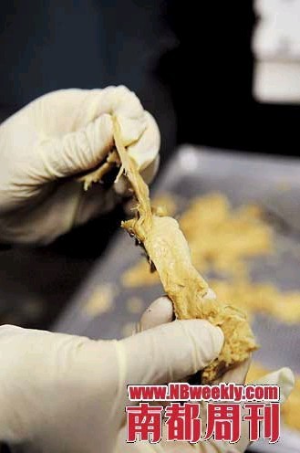多年以来,生物工程教授谢富弘就一直在琢磨,怎样解决仿造鸡肉这个难题。在桂格麦片公司任职时,他曾成功地用甘油丙三醇将早餐麦片中的葡萄干变软和。在他看来,仿造鸡肉无非是将黄豆、麦面筋、油和水混合在一起而已,大部分肉类仿制品——包括素鸡——都是这些原料混合出来的。问题是,用什么法子混合?怎么将这堆粘糊糊的东西变成一块鸡肉呢?